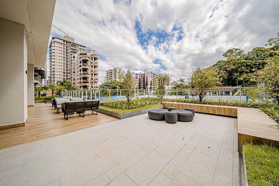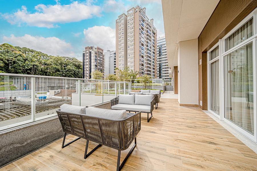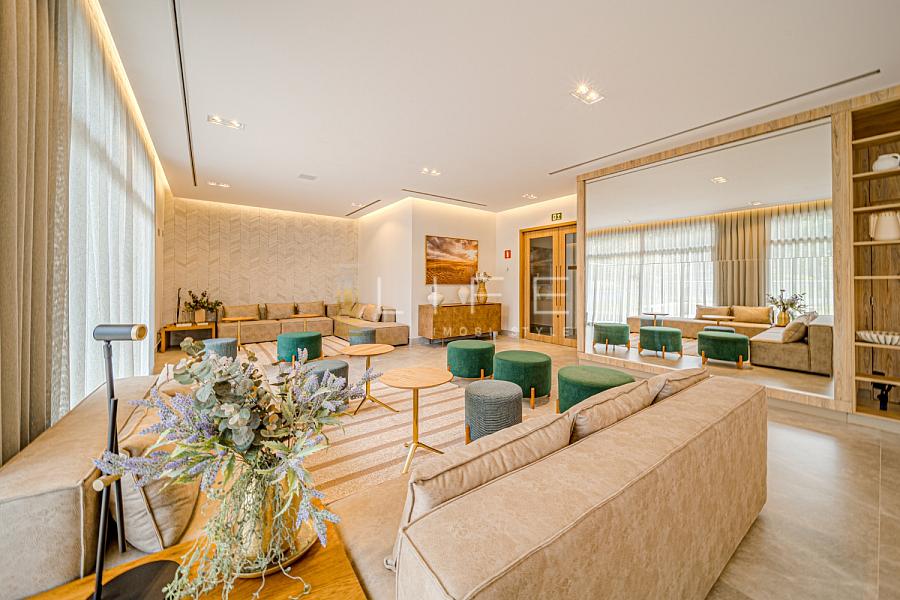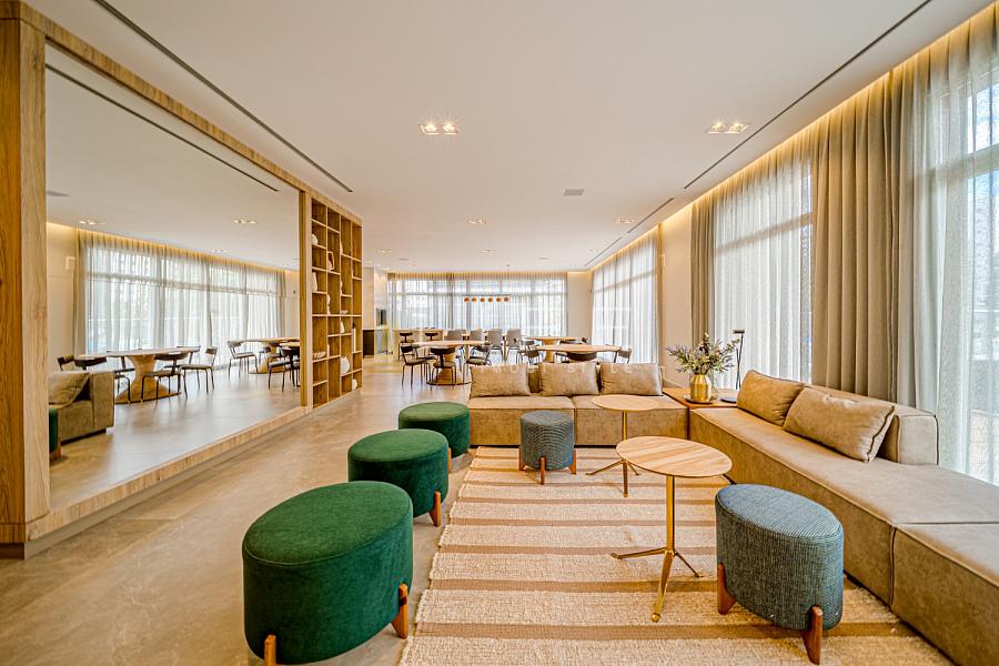 E o salão de festas! Muito conforto, espaço e com portas janelas que o ampliam para os terraços descobertos.
