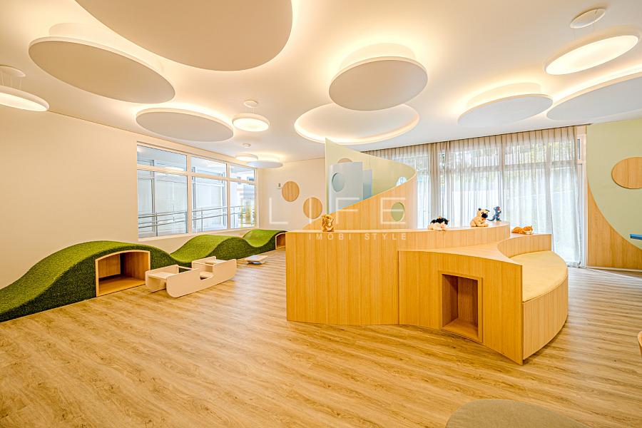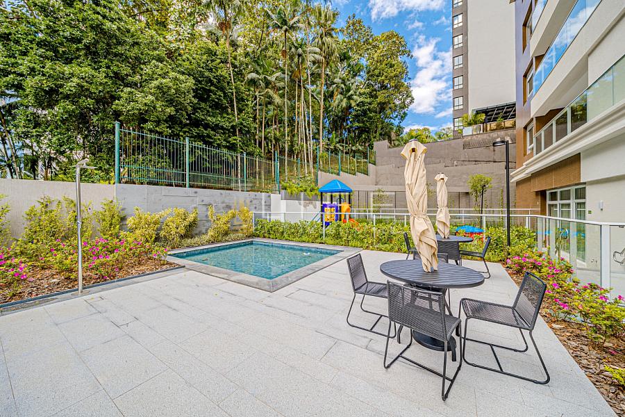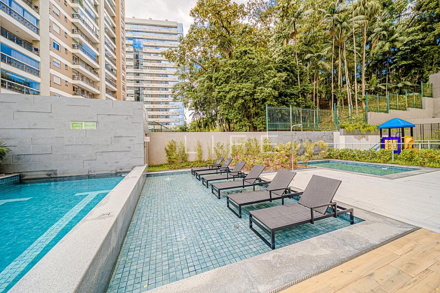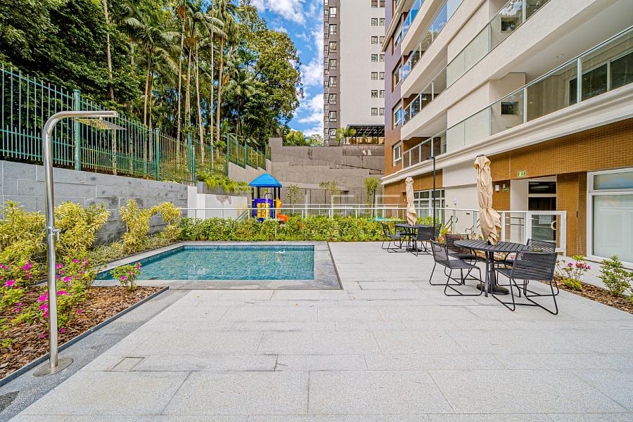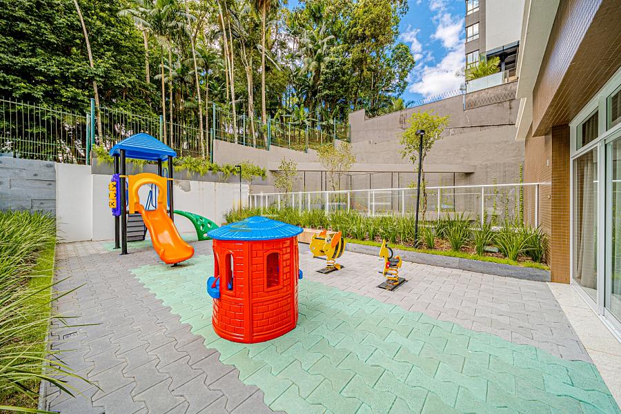 Piscina infantil, playground, ampla brinquedoteca integrada com o salão de jogos.