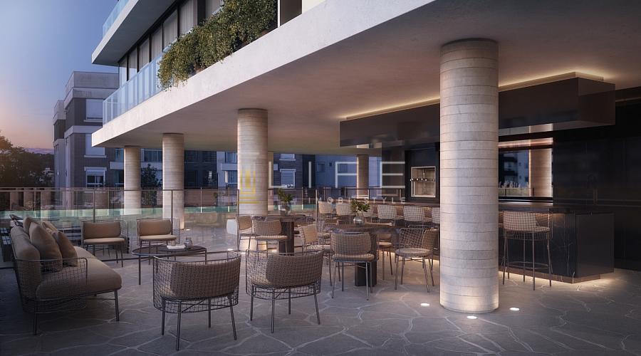 Esta planta conta com 148,62m² privativos, com um living integrado com sala de estar, sala de jantar e cozinha americana, área gourmet com churrasqueira, lavabo e área de serviço.