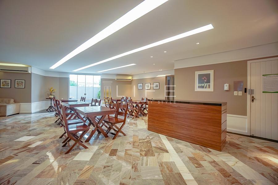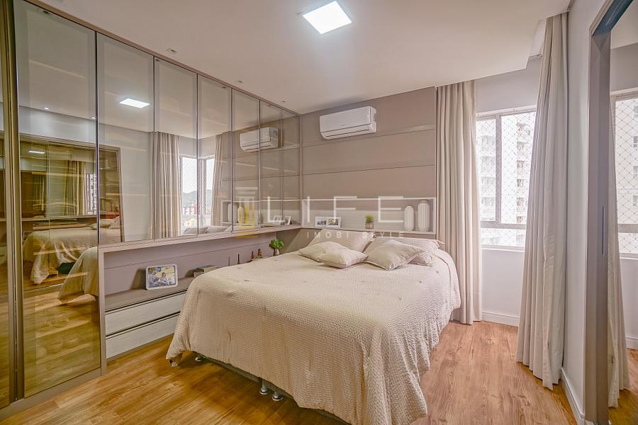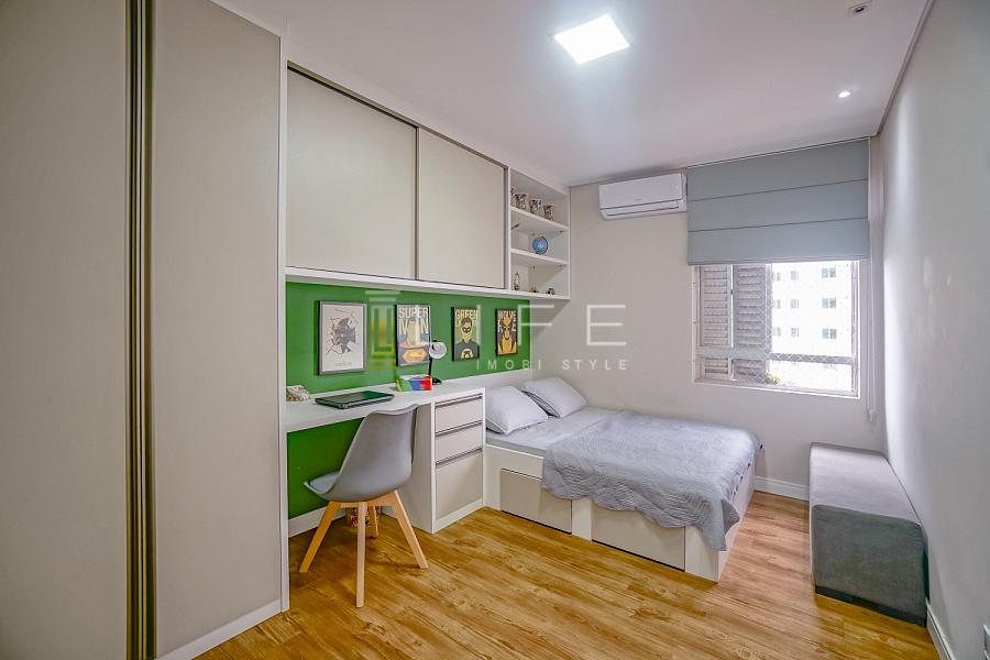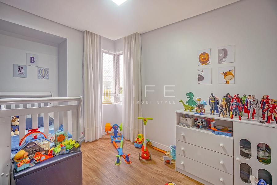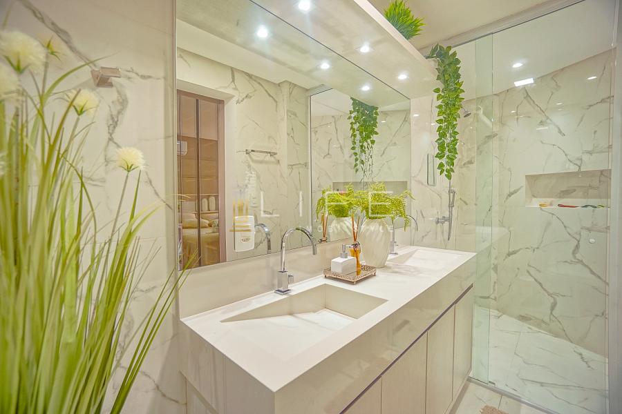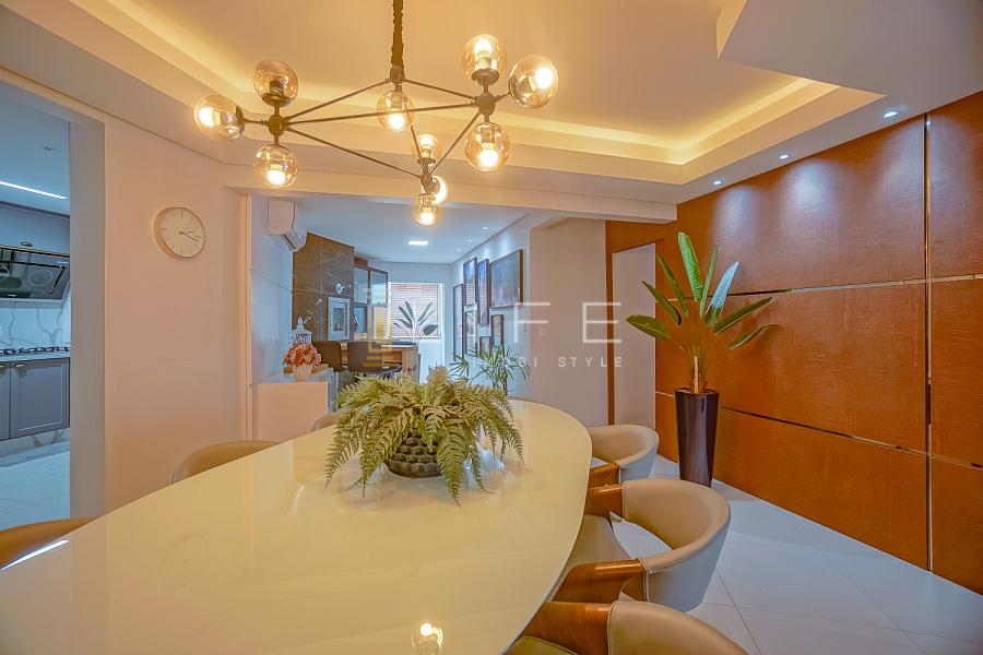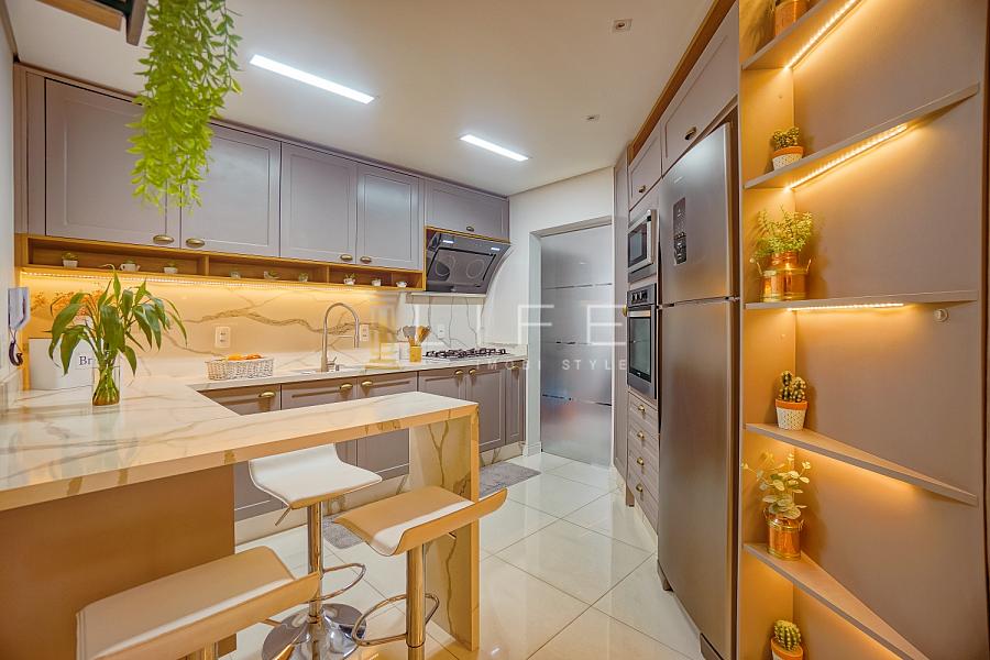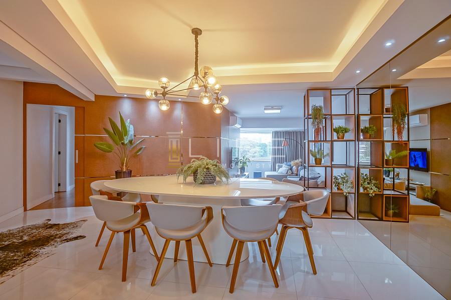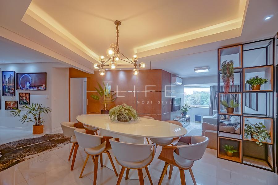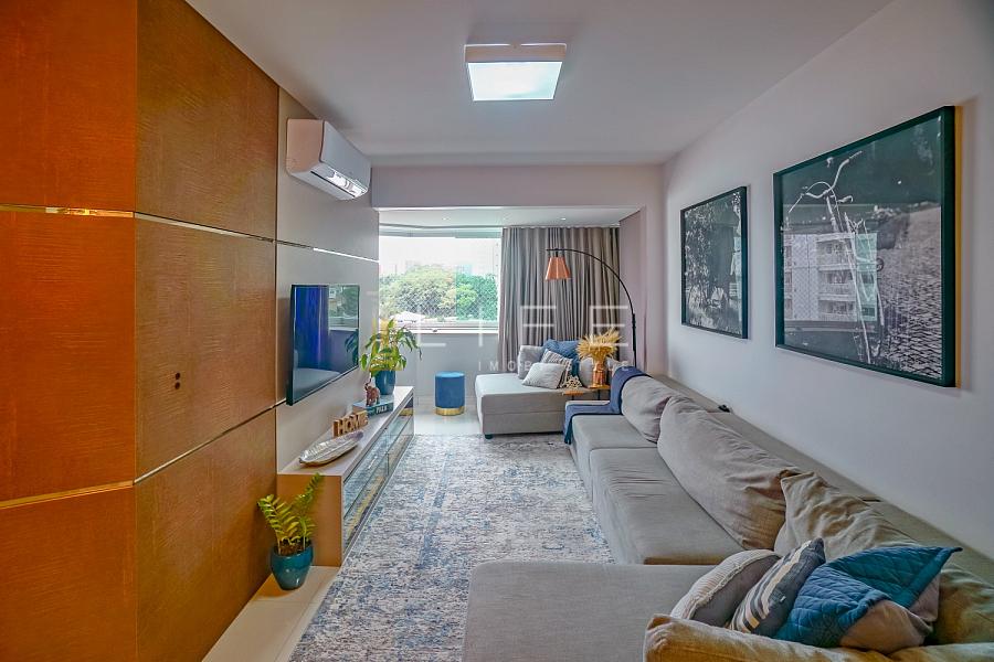 Apartamento com 129,15m² privativos, living integrado de estar e jantar, cozinha planejada, área gourmet com churrasqueira e área íntima com 3 dormitórios, sendo 1 suíte.