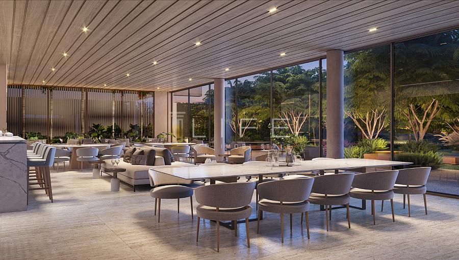 A torre única conta com uma área residencial de apenas 16 unidades, todas com a vantagem de uma vista para o parque privativo e projetadas para aproveitar ao máximo a luz natural ao longo de todo o dia.