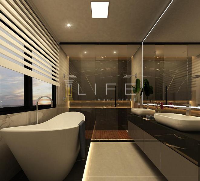 Área íntima conta com 3 suítes, sendo a principal master, com possibilidade de uma 4ª suíte. São 4 vagas de garagem (2 cobertas e 2 descobertas).