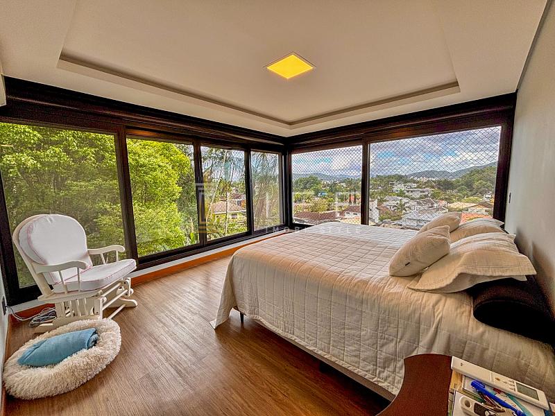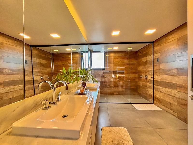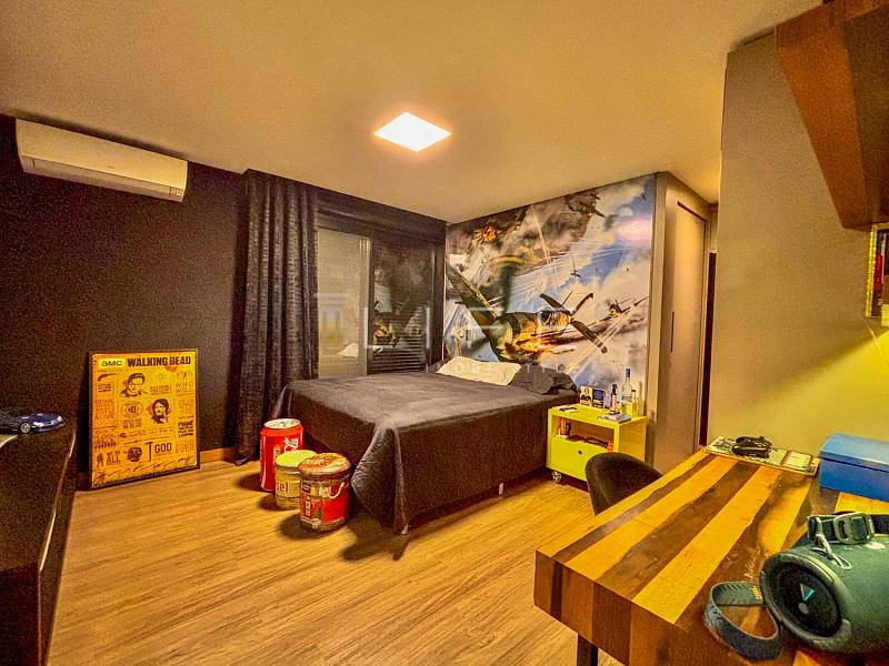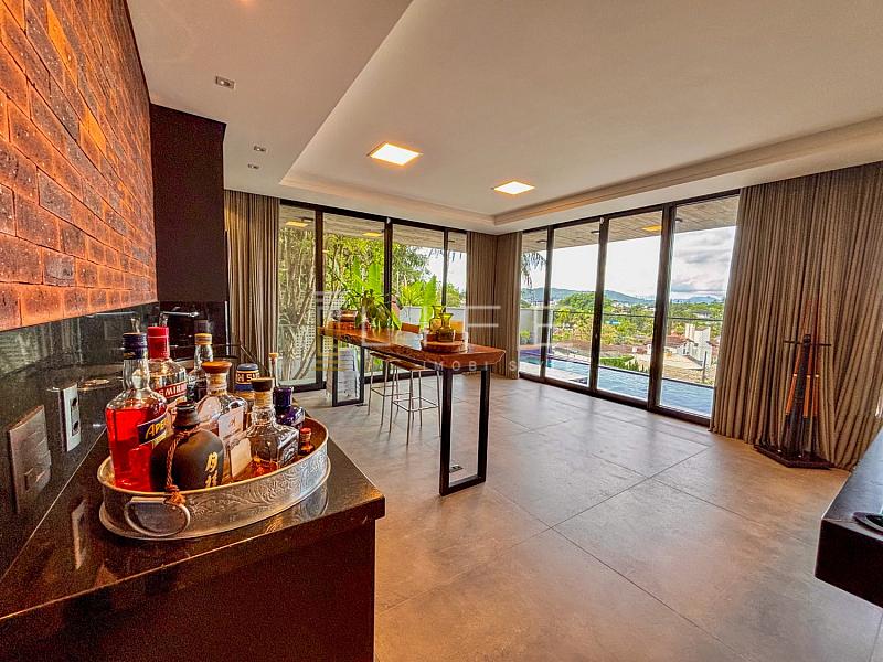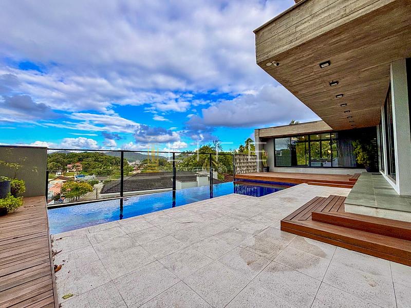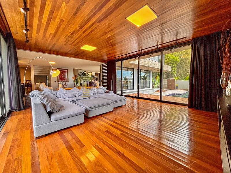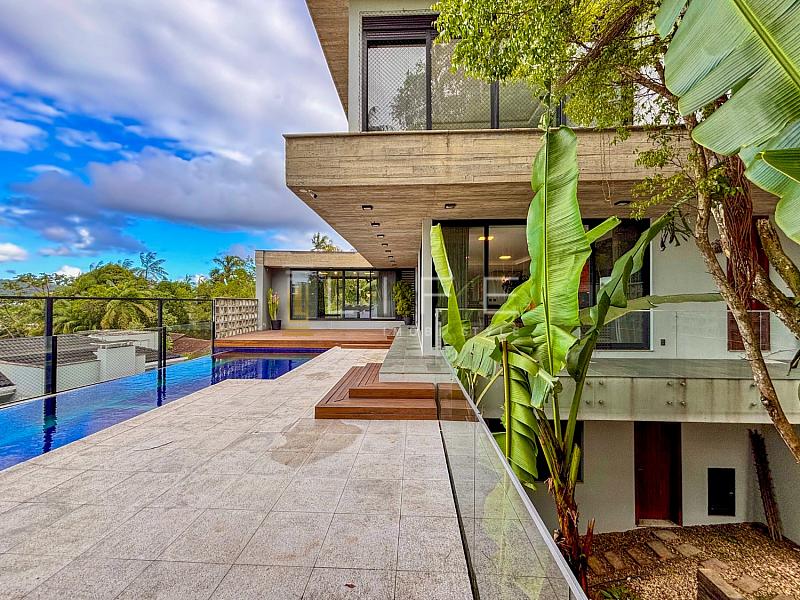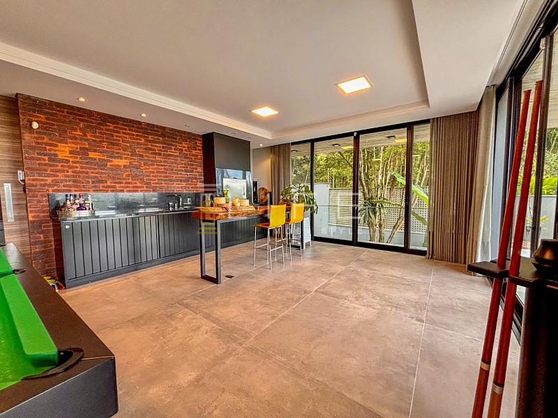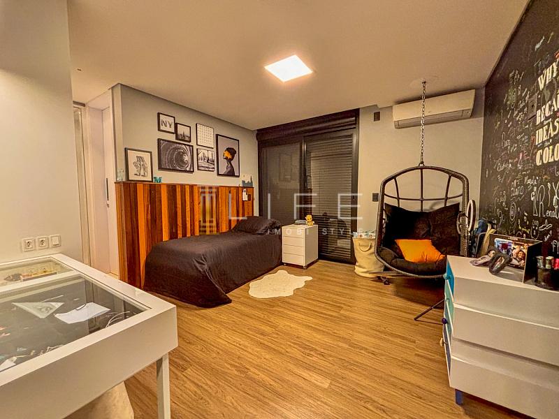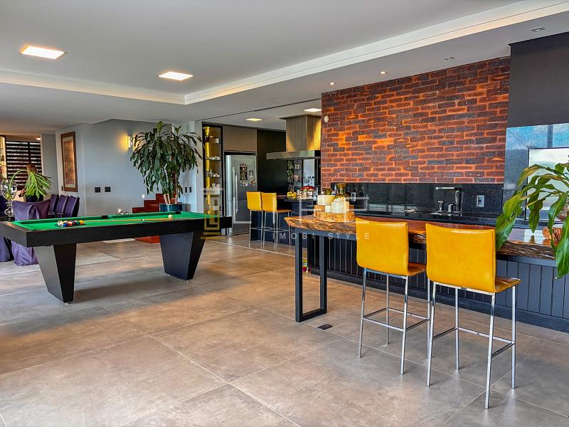3 suítes, ambientes integrados, living espaçoso, cozinha gourmet e uma piscina aquecida com deck de madeira.