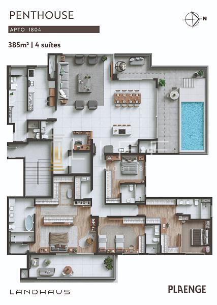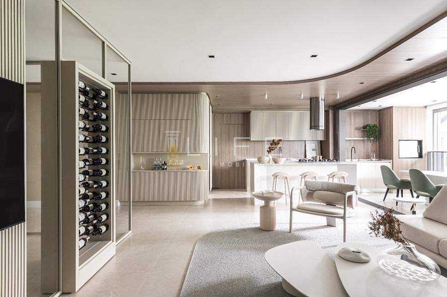 Cobertura plana com incríveis 385m² privativos, 4 suítes sendo a principal master, living totalmente integrado com estar, jantar, cozinha e área gourmet com churrasqueira, um amplo terraço com piscina privativa com uma vista espetacular. Conta também com lavabo, copa, espaço home office e área de serviço com banheiro de apoio.