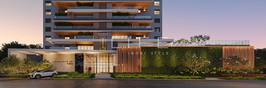 Conhecido pelo encanto de suas ruas calmas e rodeadas por árvores, o bairro América serve de inspiração para este maravilhoso projeto arquitetônino, o LANDHAUS. Pensado para oferecer experiência de viver em um apartamento com conforto de casa, com uma vista deslumbrante da paisagem que o cerca.