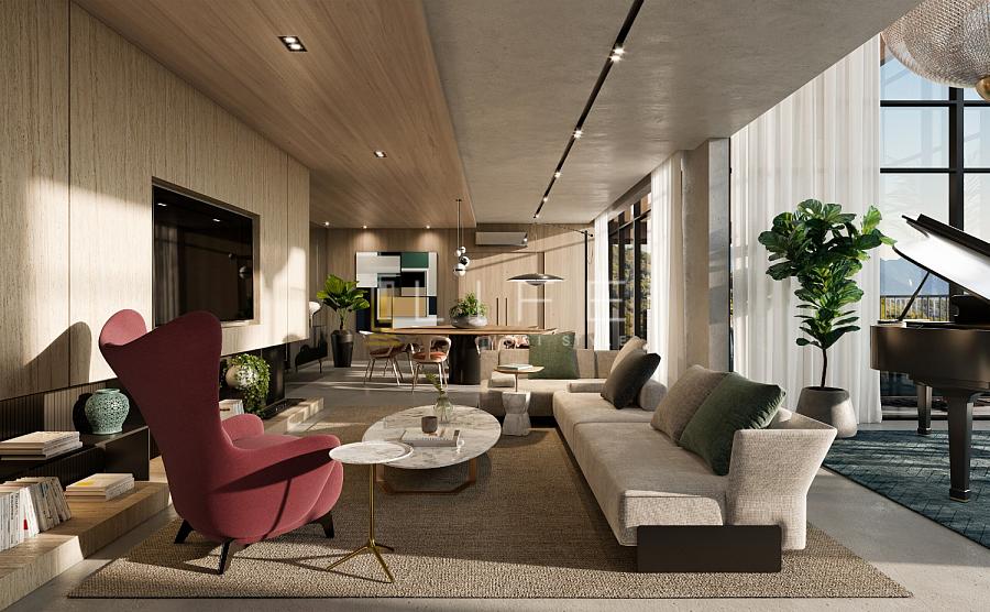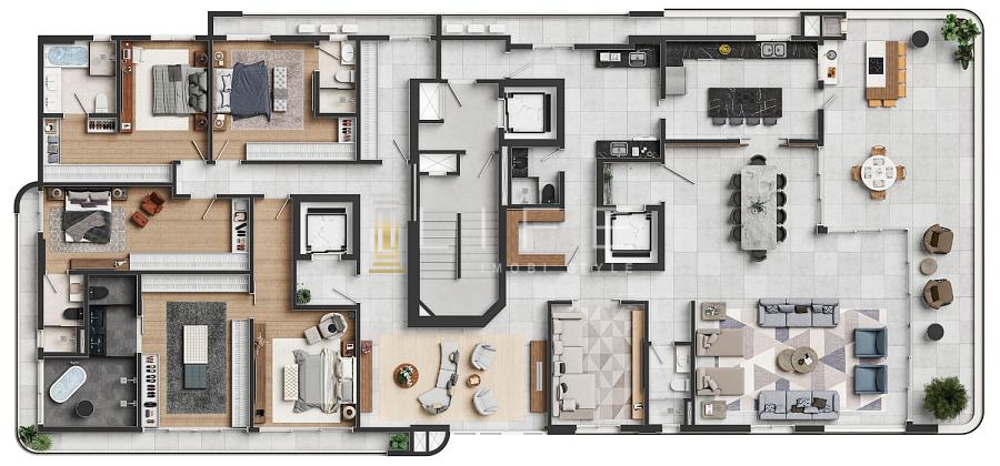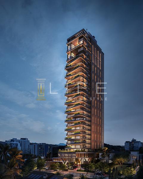 Com 431m² privativos, a cobertura é composta por 4 amplas suítes, sendo a principal master, contemplando closet, banheira e sacada.