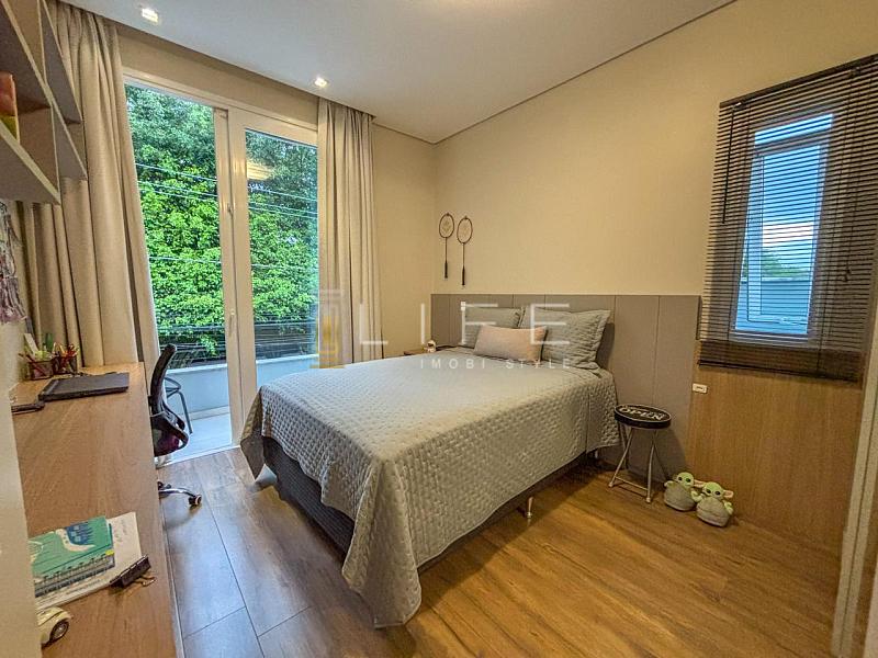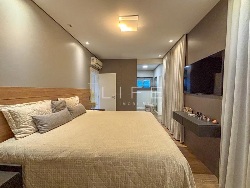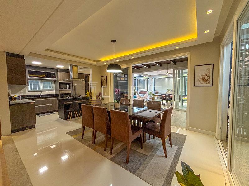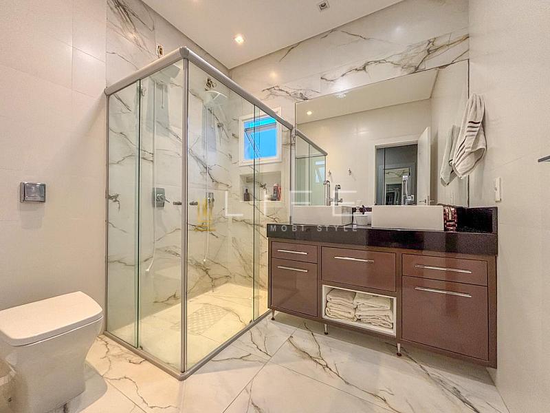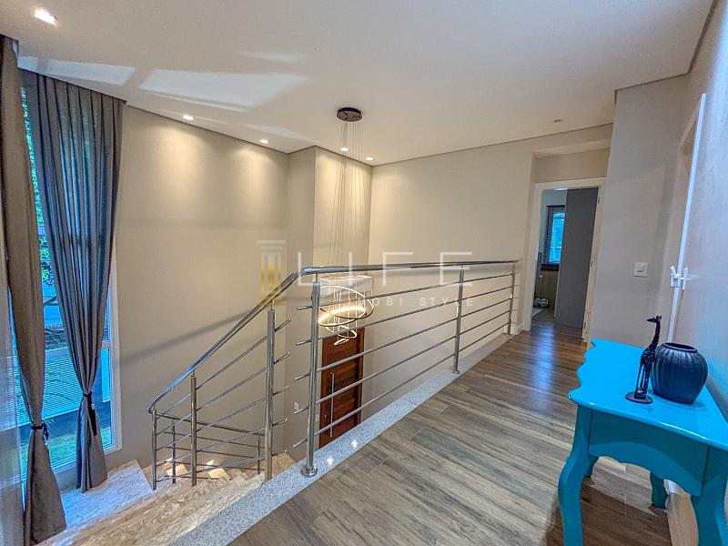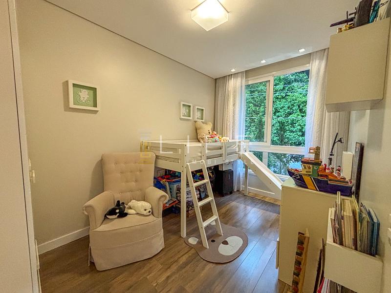 Cozinha em ilha com bancada, lavabo, jardim de inverno e depósito. Suíte com closet e dois dormitórios.